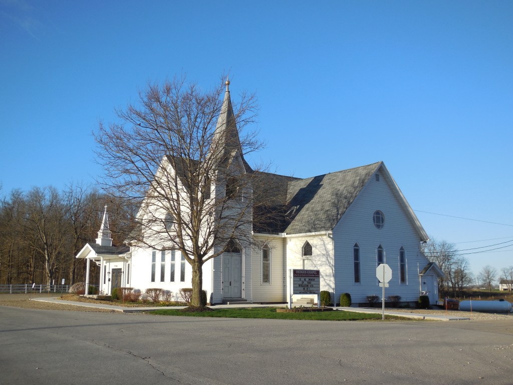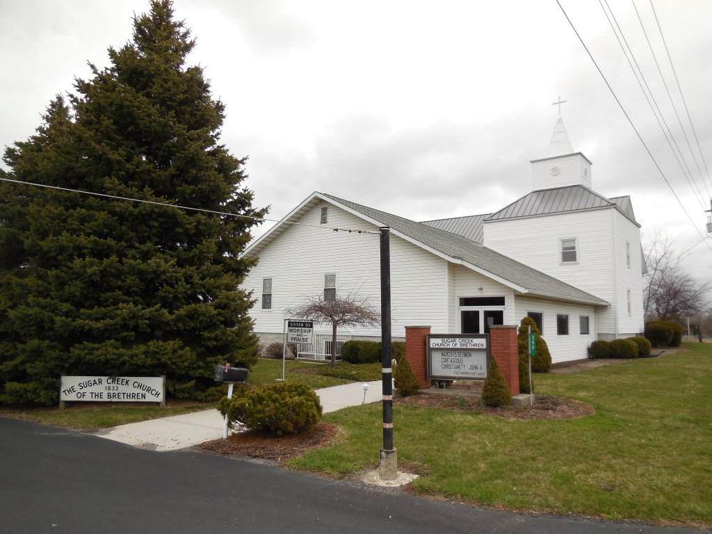 Christopher also served as a justice of the peace, the first clerk of Bath Township, and was appointed to a judicial position. On top of all of that, he was assigned the task of laying out the future county seat and platted Lima on 160 acres in 1831. Mary Ann was laid to rest with relatives and other early pioneers in Berryhill Cemetery. Christopher died in a railroad accident and was buried with relatives in Mount Hope Athens Cemetery on SR 14 in Henry Township, Fulton County, Indiana. Sugar Creek Church of the Brethren (German Baptist) was organized in 1833. The present church structure was built in 1853. It has undergone many renovations and been added on to during its existence.
