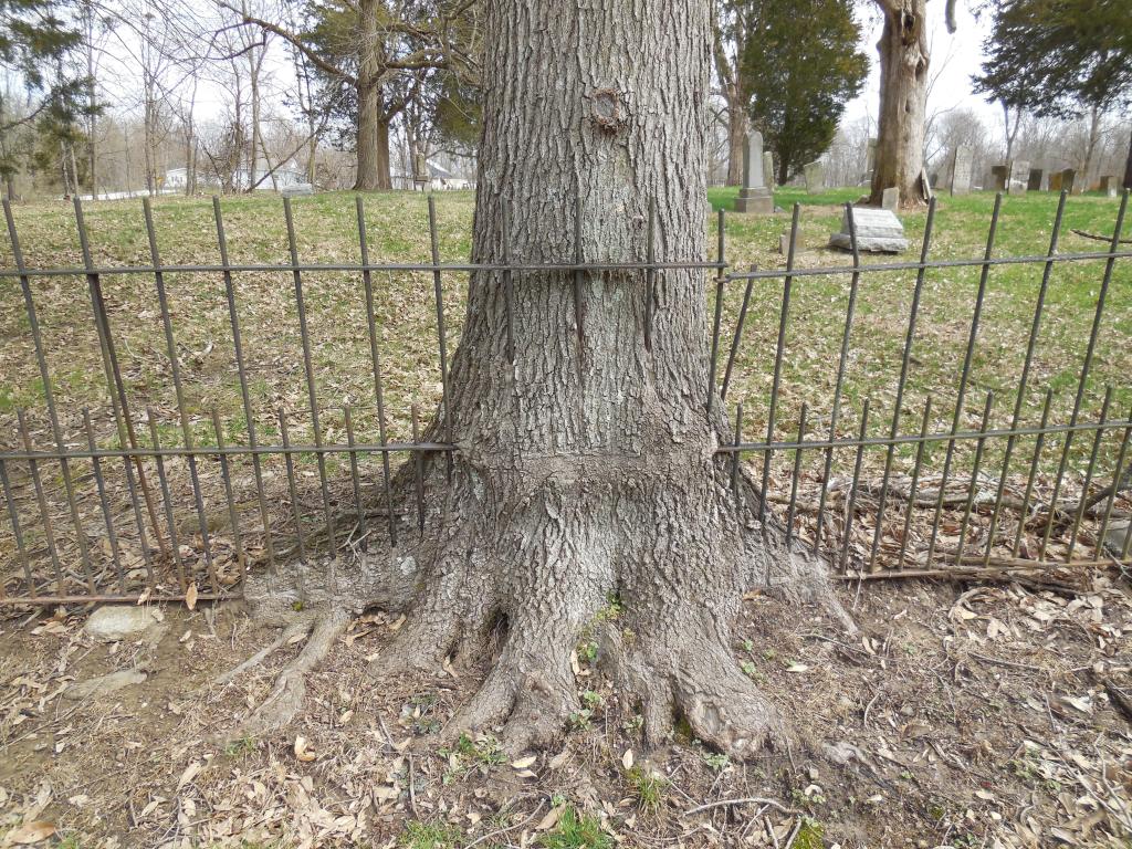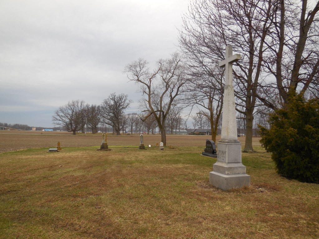 The town was just barely passed up by the Cincinnati & Indianapolis Junction Railroad. Its tracks were laid 1/2 of a mile to the south and the present town of McGonigle grew around them. Stillwell’s post office moved there, as did the the area’s businesses, and Stillwell was left in the dust. Silas Roll was buried with relatives in Oxford Cemetery 3 3/4 miles north of the GPS coordinates on the west side of US 27 in Oxford Township. Stillwell Cemetery was established in 1811, a couple decades before the town sprang up. Many township pioneers were buried there in currently unmarked graves and remaining stones have been laid flat. Its well-maintained and has a nice wood fence surrounding a war veterans memorial.