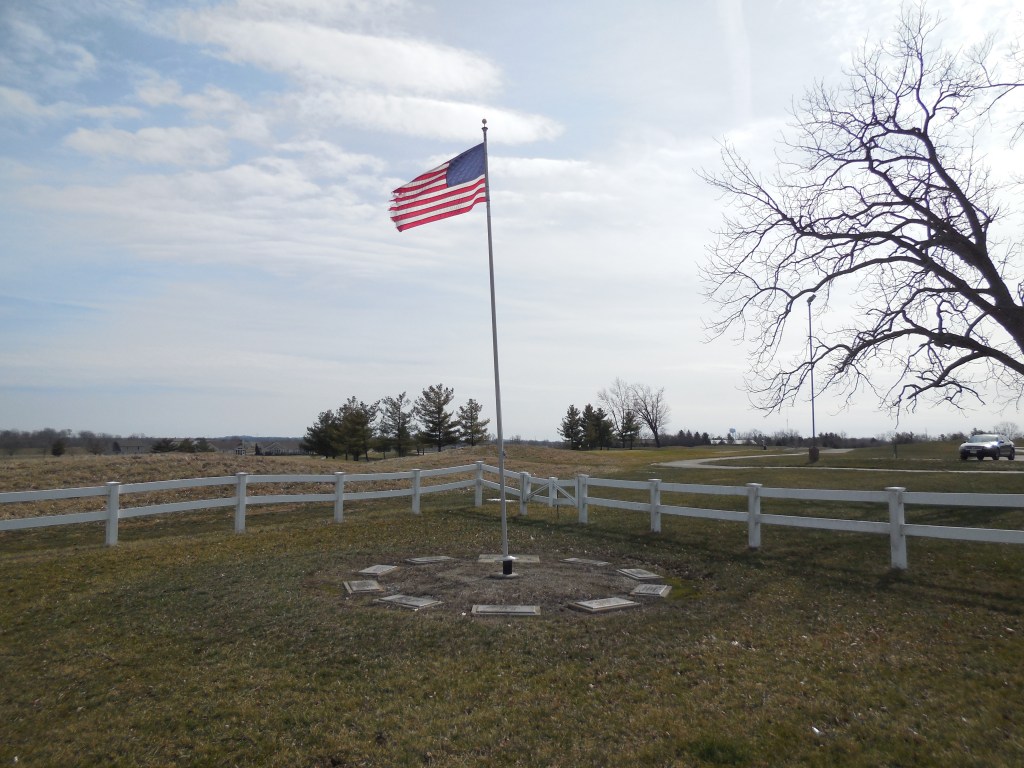 Remnants: historical marker and war veterans memorial at Stillwell (Hancock Family) Cemetery 1/3 of a mile north of the GPS coordinates on the grounds of Indian Ridge Golf Club