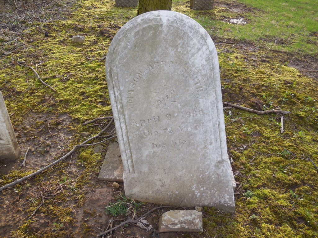 Simon saved the settlers of Concord Mills from complete annihilation by local natives, led by Shawnee Chief Tecumseh, when Mason was just 6 weeks old. His unexpected appearance and warning to the natives deterred them from attacking. Mason and William were buried with many relatives in Kenton Memorial Cemetery. Much more about information about the Arrowsmith and Kenton families was recorded in the old county history books.