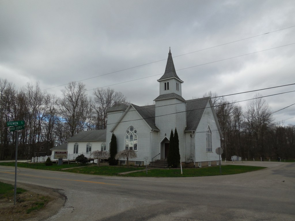 Remnants: Mount Zion United Methodist Church and Cemetery about 1 3/4 miles southeast of the GPS coordinates at the intersection of Aurora Rd NE and Bellflower Rd