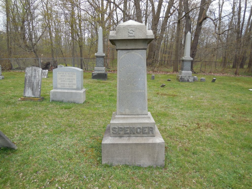 Description: The town was founded by Joseph Mitchell Watson (1822 – 1876) and Mary Jane (Courson) Watson (1821 – 1892). They had 8 children, moved to Ohio from Pennsylvania around 1870, and owned an 80-acre farm in the southwest lot of the intersection. A school was on their farm on the south side of W Windsor Rd west of the GPS coordinates and was pinpointed in the 1874 county atlas. Although it predates the family’s arrival in Ohio, North Colebrook Cemetery was also established on what was the Watson farm. Back then, it just comprised of the section on the east side of Fee Rd. Joseph and Mary Jane were buried with relatives and other early pioneers from the area in the cemetery, including the Beckwith family who previously owned the land and members of the Fee family who the road was named after.