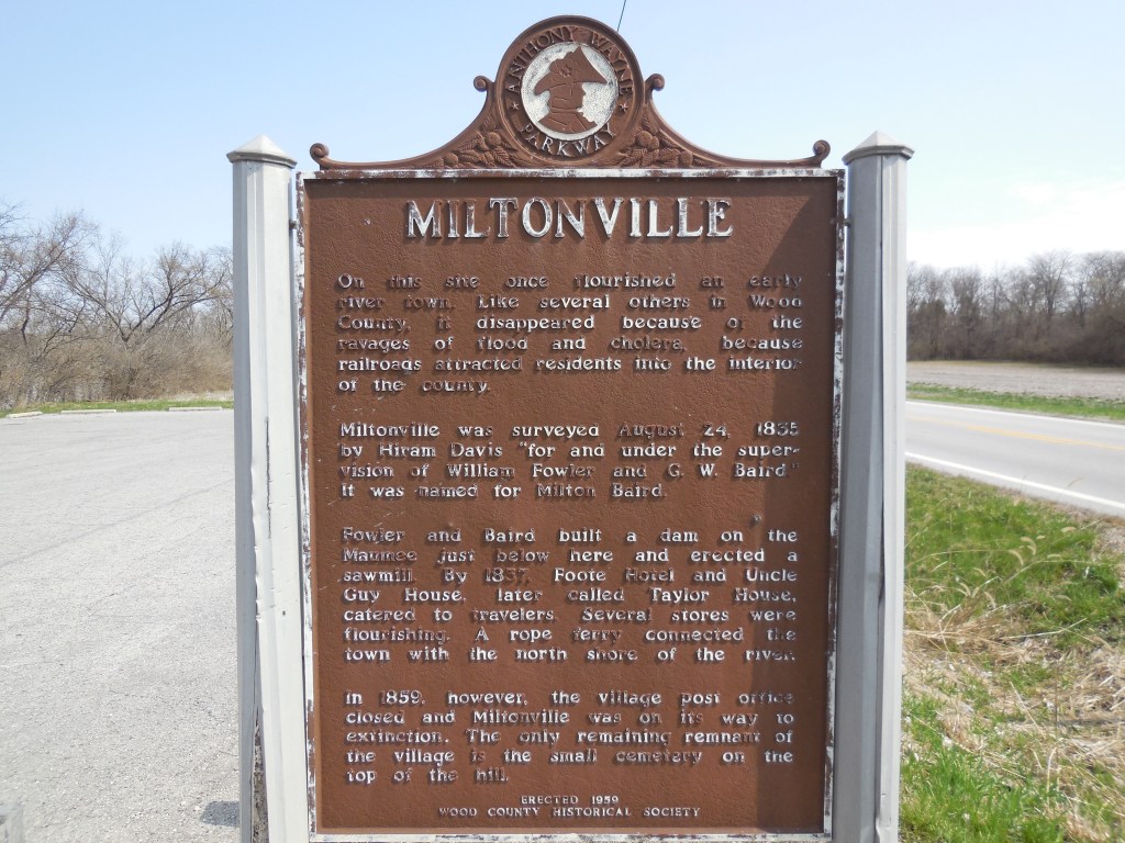 Description: Sugar Creek Settlement was the first village in Allen County and was used as a hub for dispersing new residents around what would later become Bath Township. It was founded in 1824 by Christopher Stark Wood (1772 – 1855) from Washington County, Pennsylvania and Mary Ann (Turner) Wood (1779 – 1844) from Maryland. They got married in 1797 and had several children. Christopher fought in many battles in the Northwest Indian War of 1785 – 1795, served as a scout captain in the War of 1812, and received much of his training as a frontiersman from Simon Kenton (1755 – 1836) who will be mentioned again later in this work.